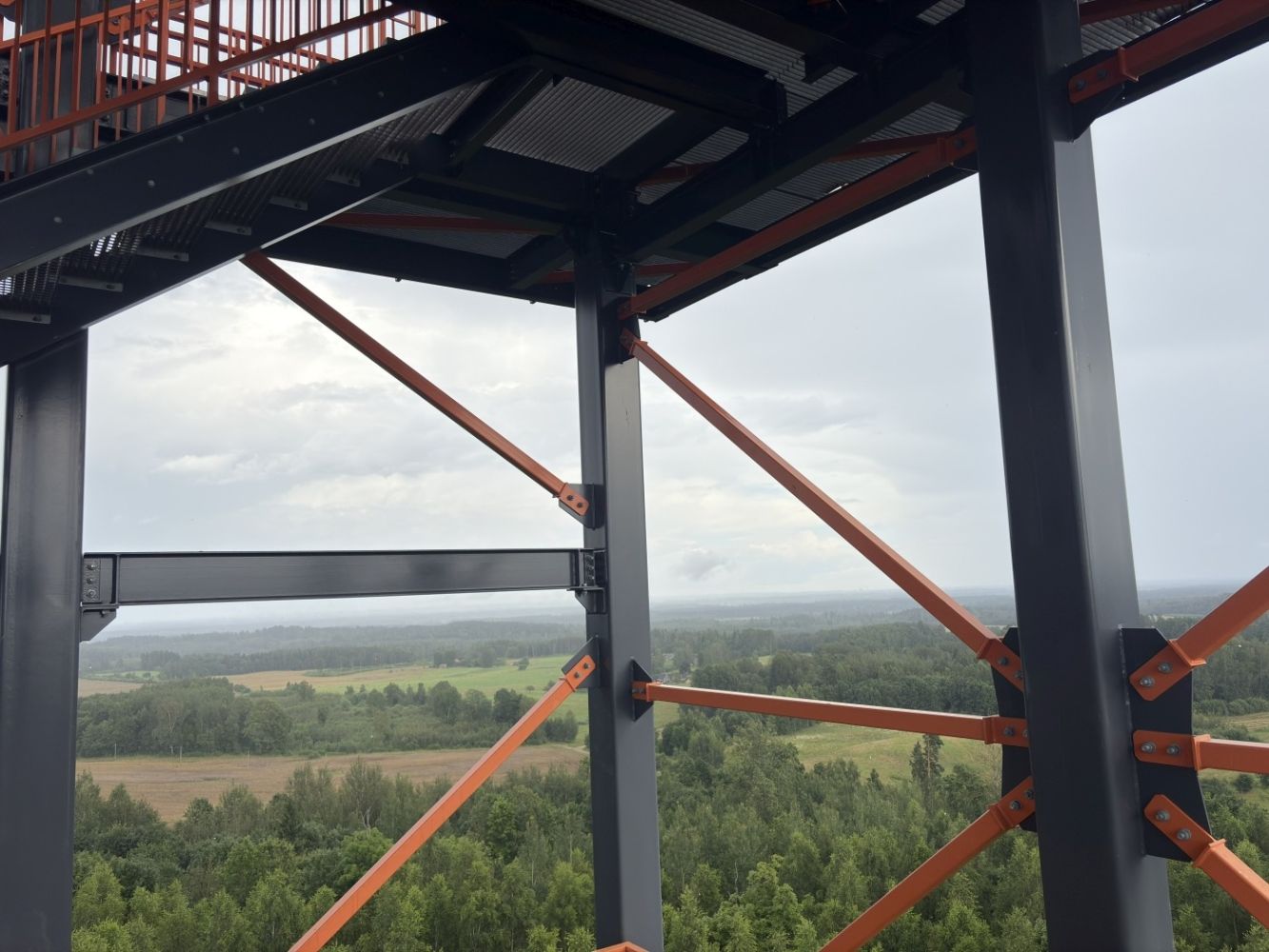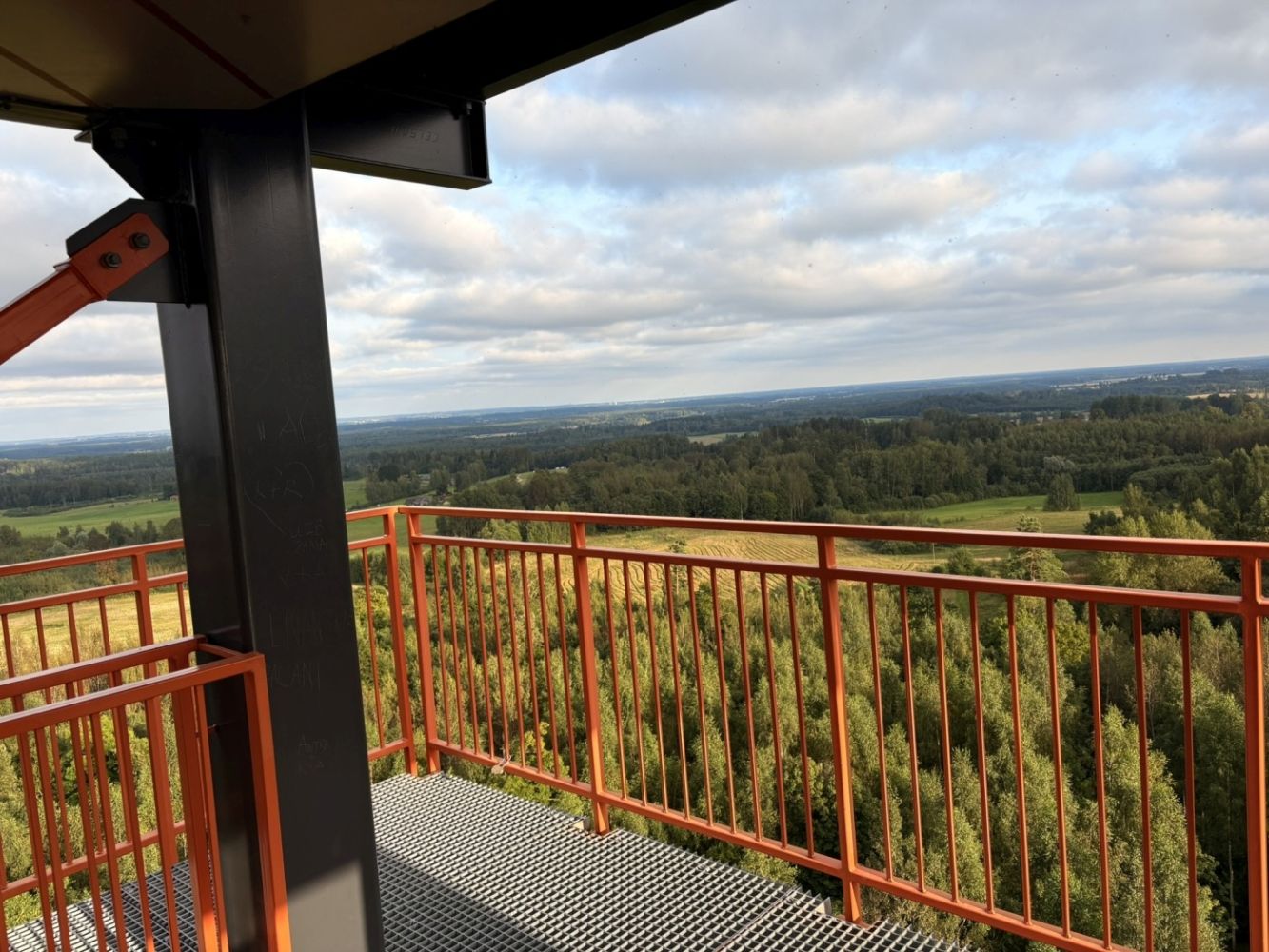 Užlipus į viršų atsiveria plati, rami ir natūrali Latvijos gamtos panorama. Iš bokšto matosi: