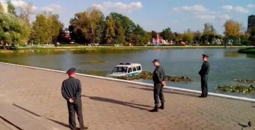 Pareigūnai nuskandino savo tarnybinį automobilį 😛.