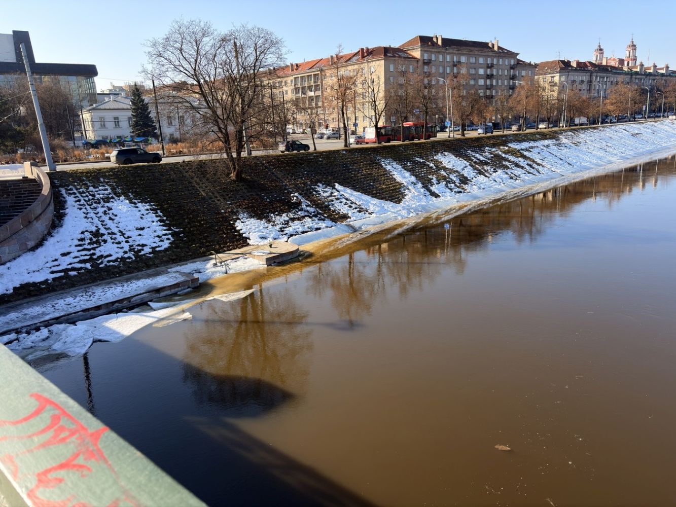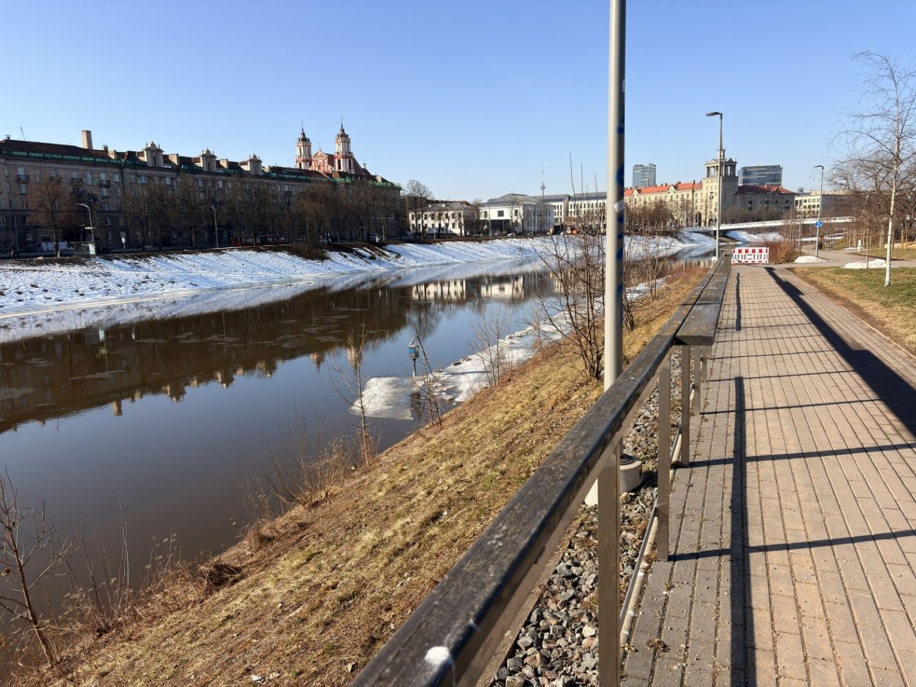 Vilniuje pakilęs Neries vanduo dar kartą priminė, kokia gyva ir nenuspėjama gali būti upė ankstyvą pavasarį. Pastarosiomis dienomis vandens lygis smarkiai šoktelėjo, todėl žemiau esantys krantinės šaligatviai atsidūrė po vandeniu. Įprasti pėsčiųjų ir dviratininkų maršrutai ties Žvėrynu, Baltojo tilto prieigomis ir kitomis atkarpomis tapo nepraeinami ir nepravažiuojami dviračiais.