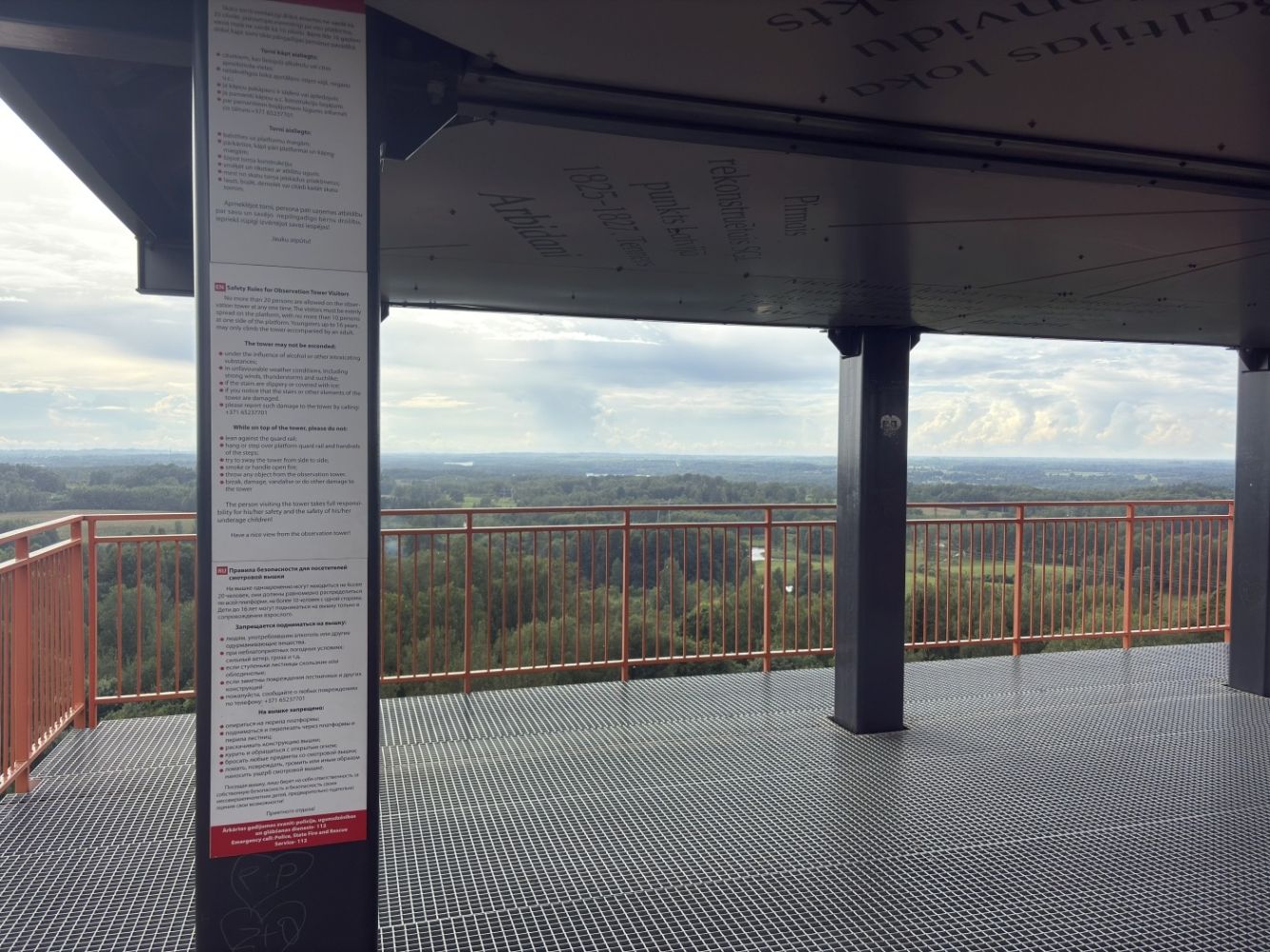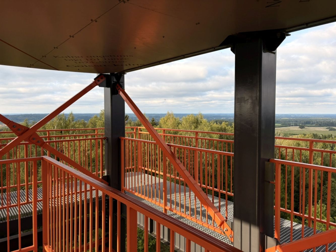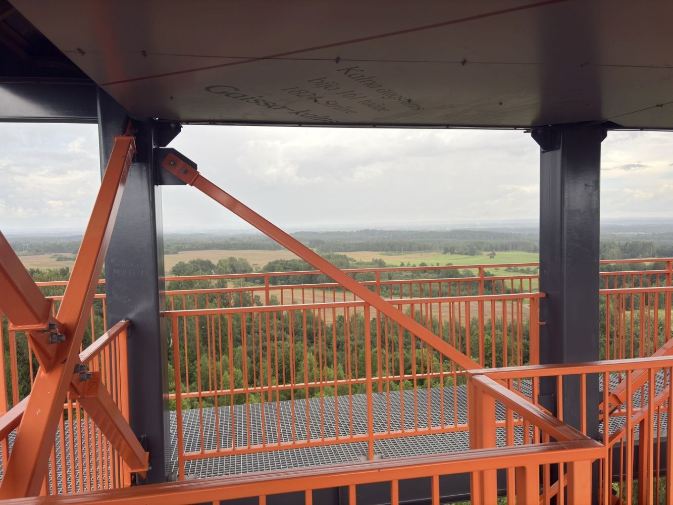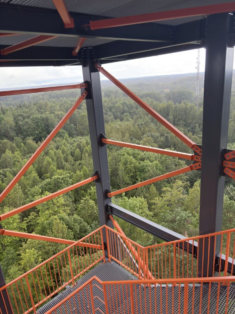 Užlipus į viršų atsiveria plati, rami ir natūrali Latvijos gamtos panorama. Iš bokšto matosi: